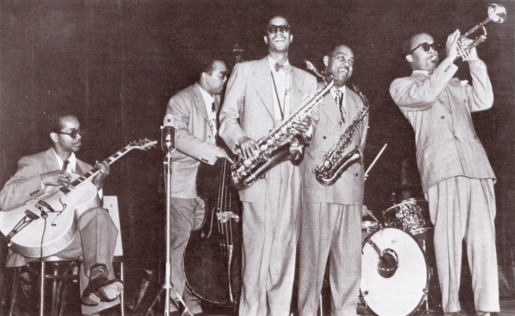 From left: Irving Ashby (g); Charlie Drayton (b); Wardell Gray (ts); Benny Carter (as);