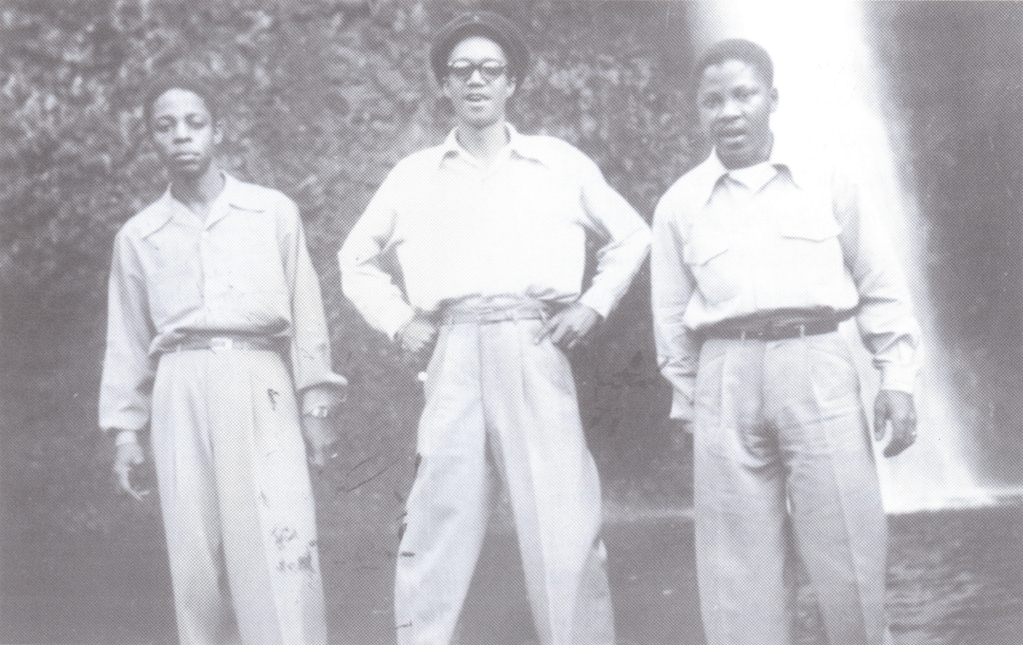 Left to right: Sonny Criss, Wardell Gray, and Tim Kennedy at Multnomah Falls, Oregon