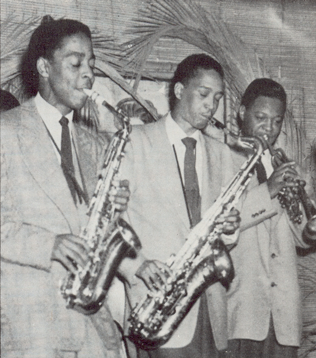 From left: Wardell Gray (ts); Frank Morgan (as); Ernie Royal (tp), Los Angeles, 1951.